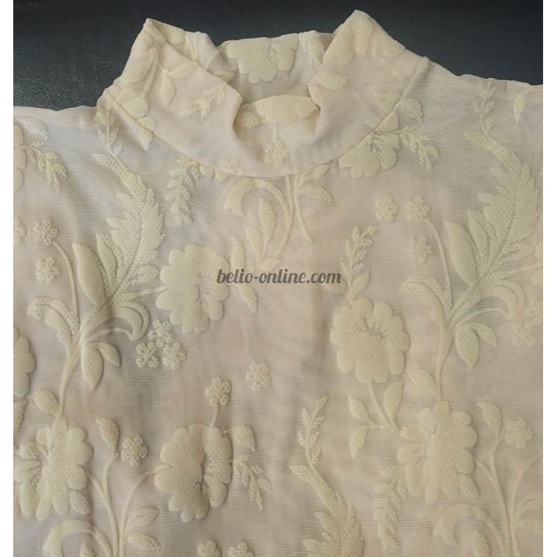 Дантелено боди с дълъг ръкав, полуполо, тип прашка, изработено от памучна дантела.