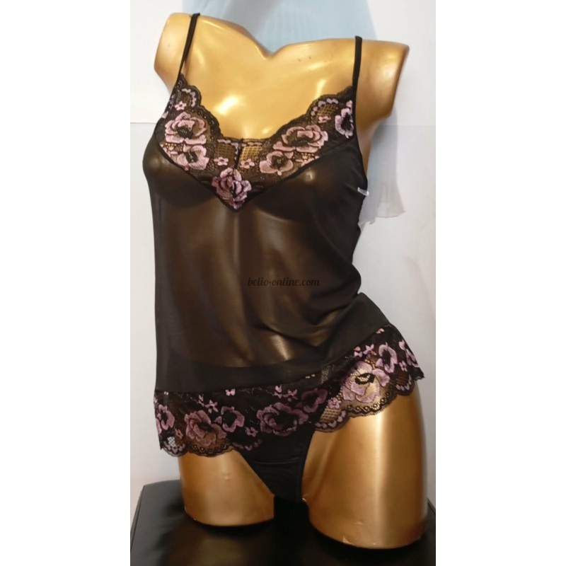 Красив тюлен корсаж от мек черен тюл и двуцветна дантела, с тънки презрамки.