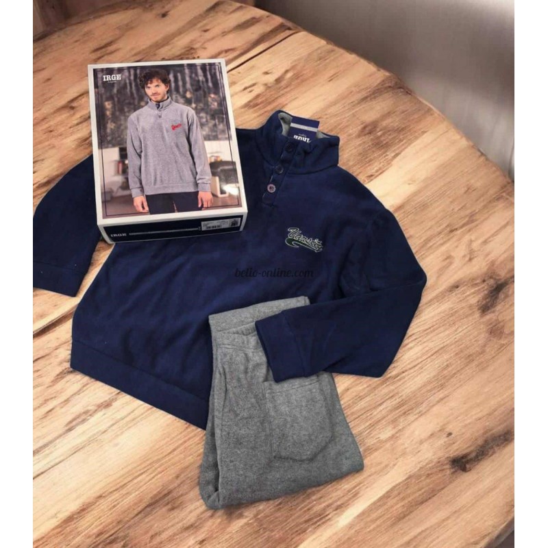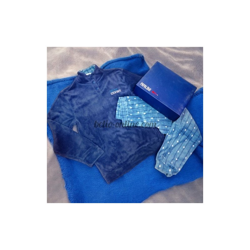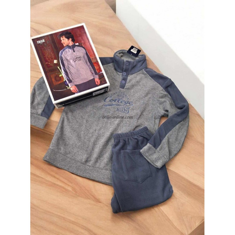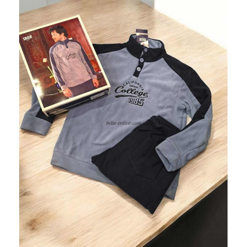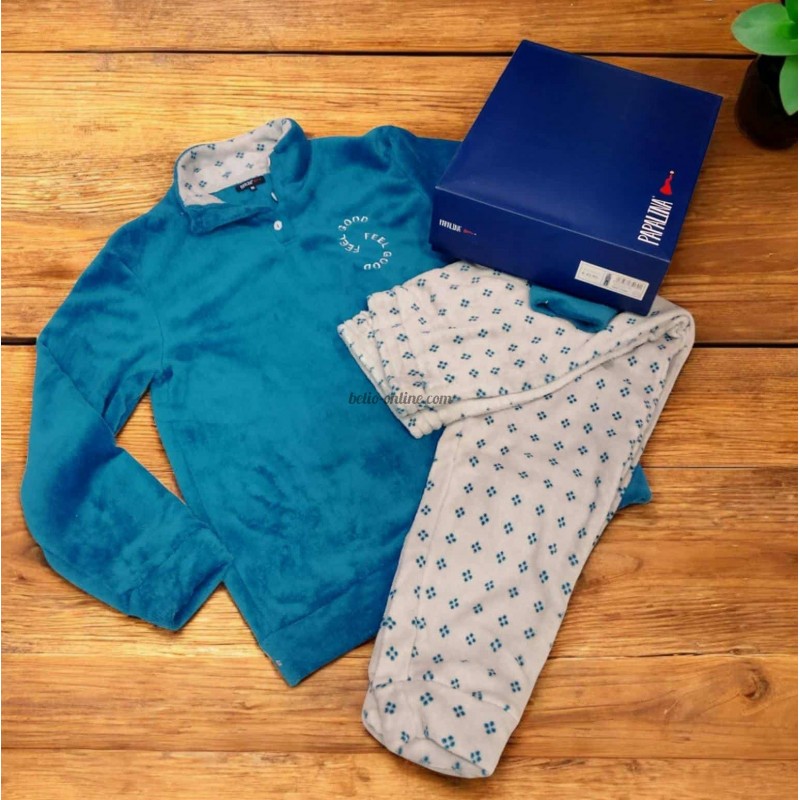 Пухкава мъжка пижама 100% полиестер, с маншети на ръкавите и панталона, задържащи топлината - удобство и комфорт за студената зима.