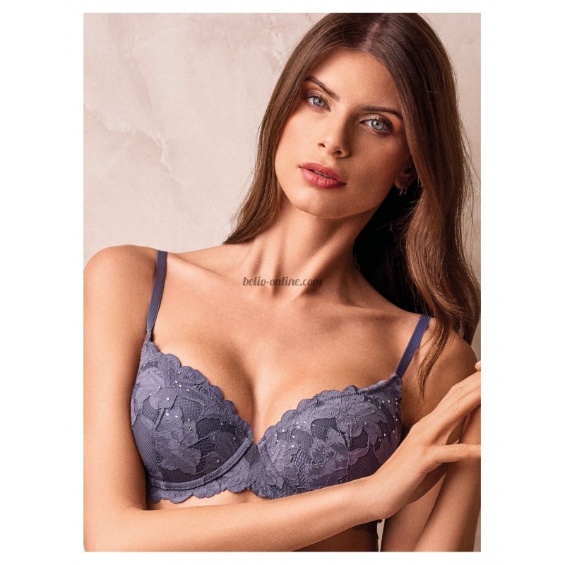 Луксозен сутиен на коланче, от елегантна мека дантела, украсена с блестящи камъчета, формовани чашки с банели, без допълнителен push. Към сутиена предлагаме уникална бразилиана на цена 20 лв.
